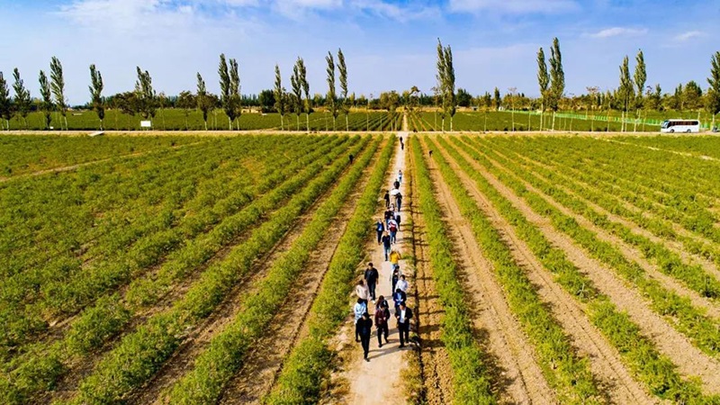 中國保健酒企業聯盟協會采風團一行參觀寧夏紅萬畝枸杞園